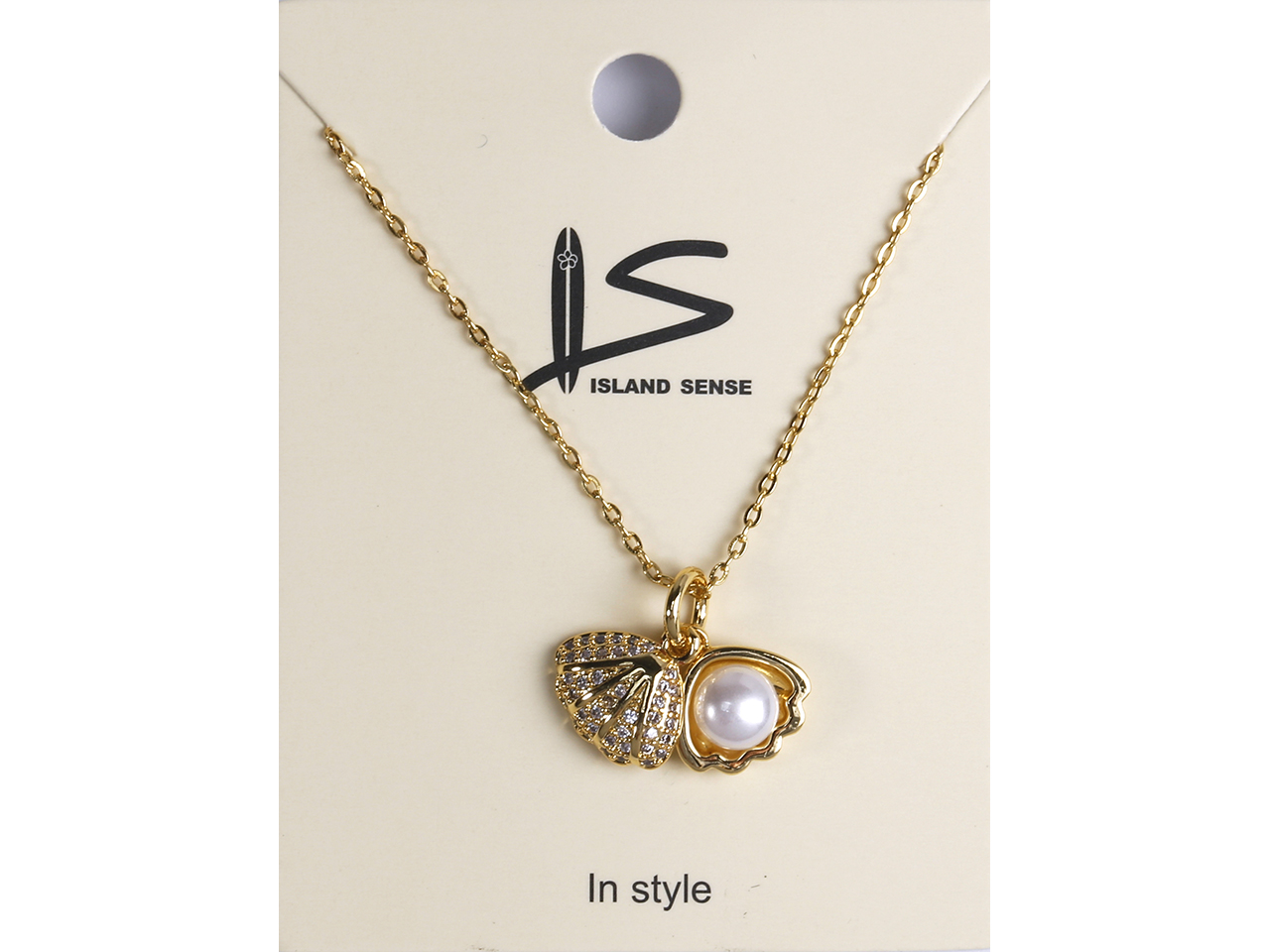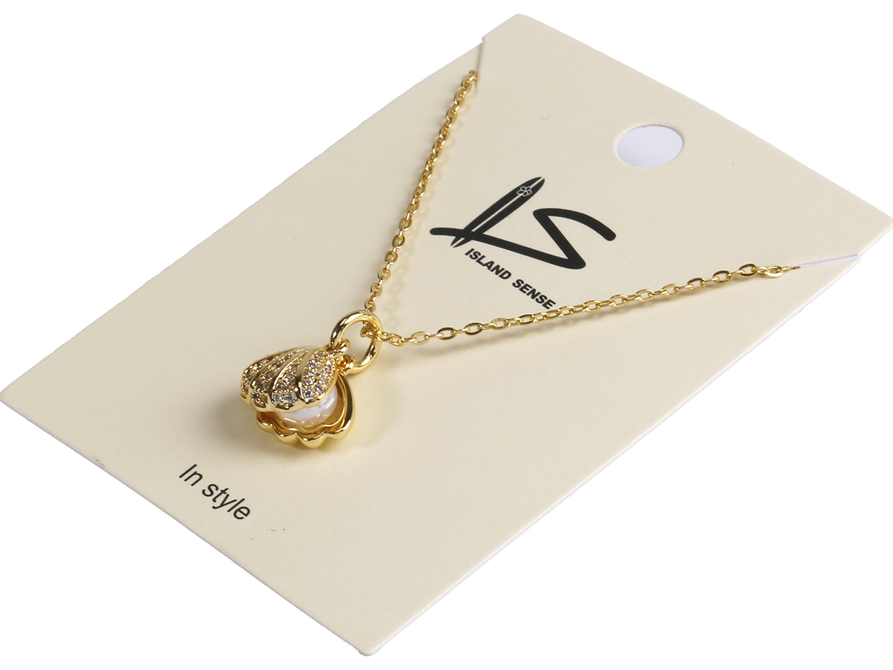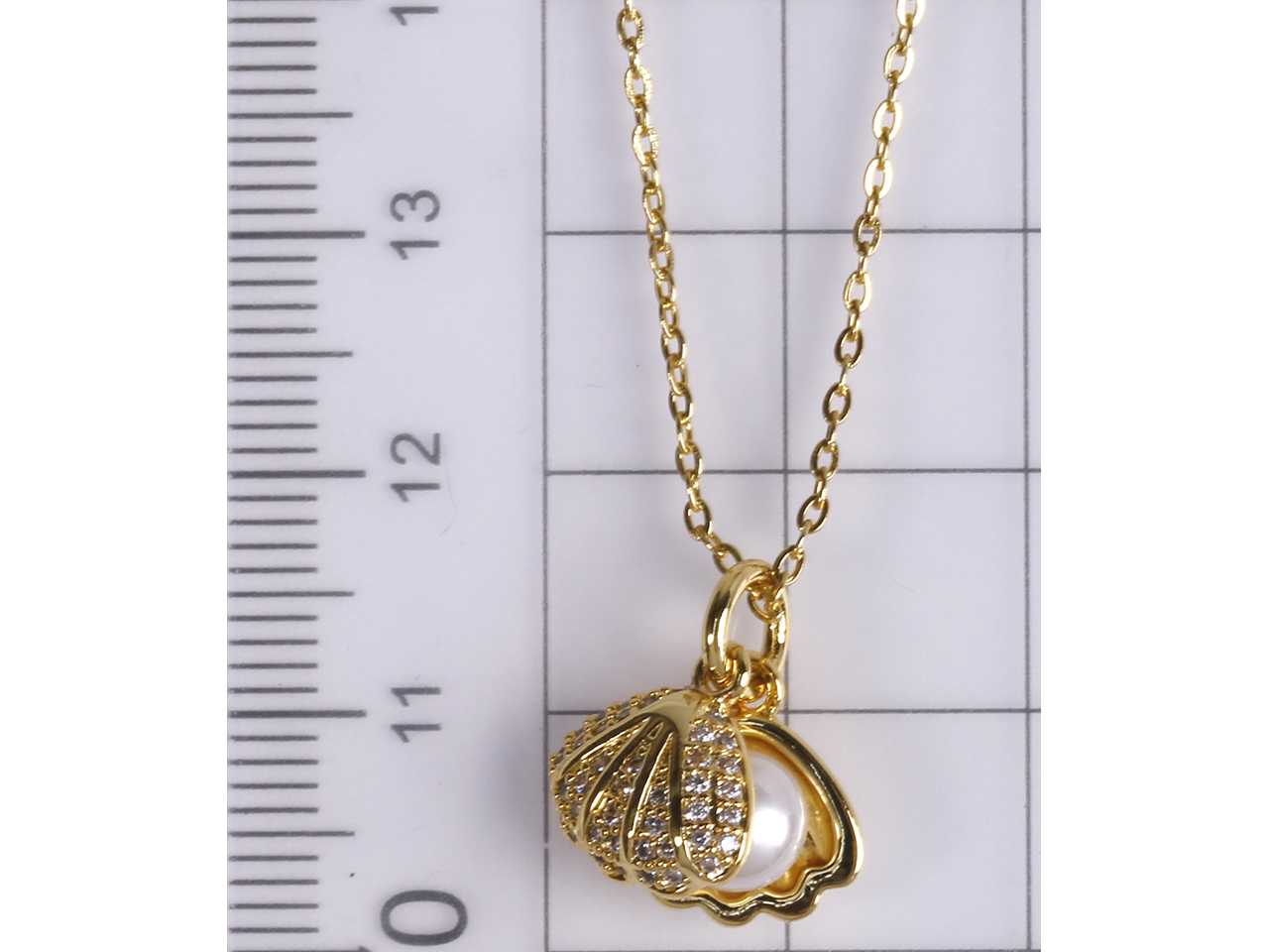 Crystal Sea Shell w/ MOP Pendant on Gold Tone 16+2″ Chain Necklace, MOQ-6