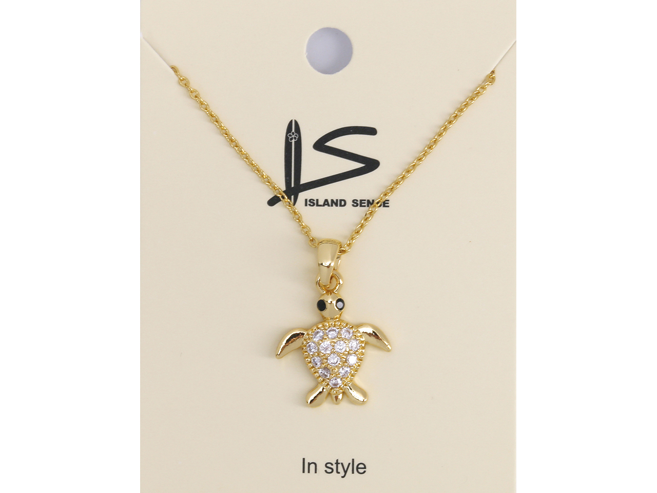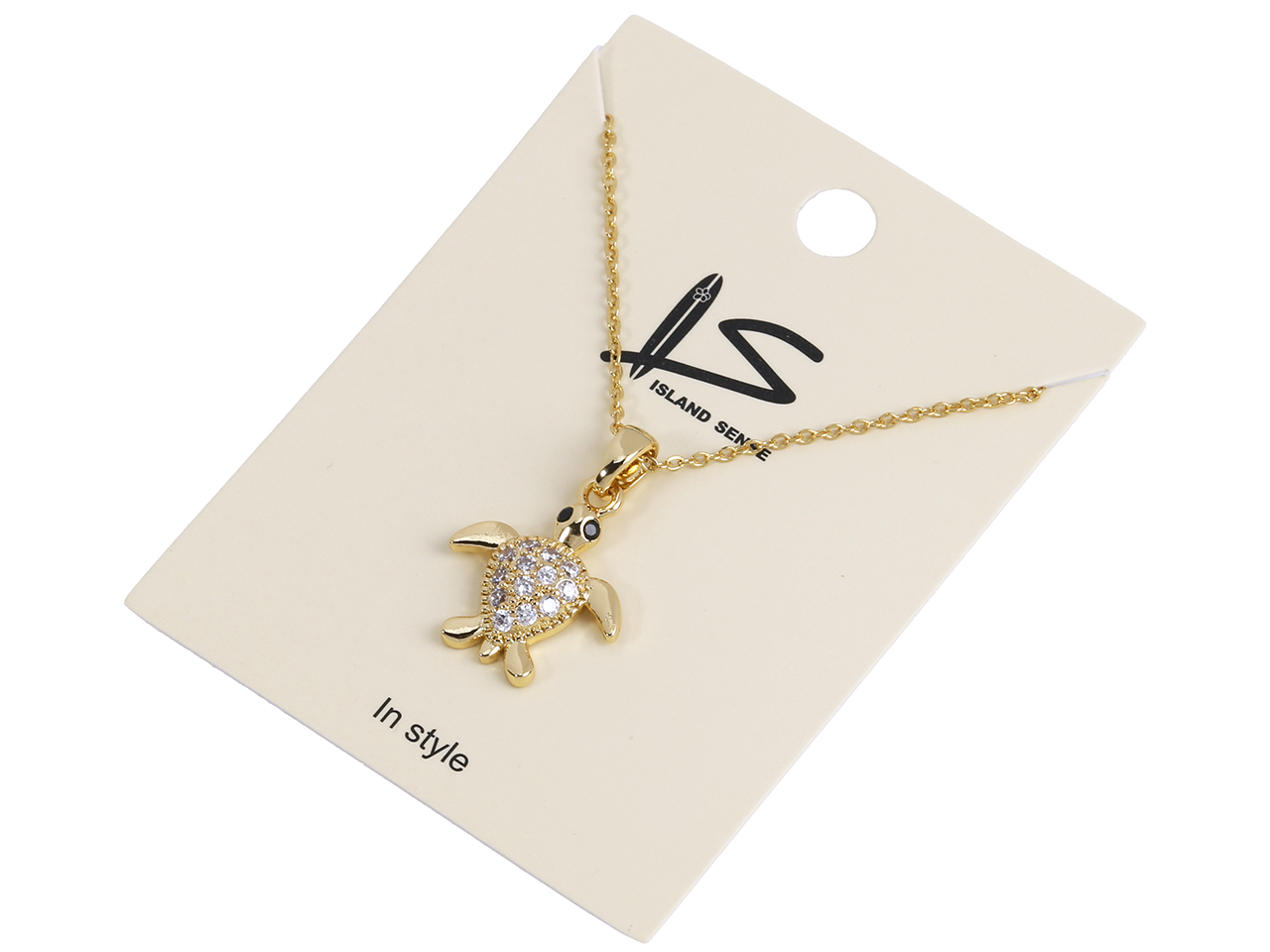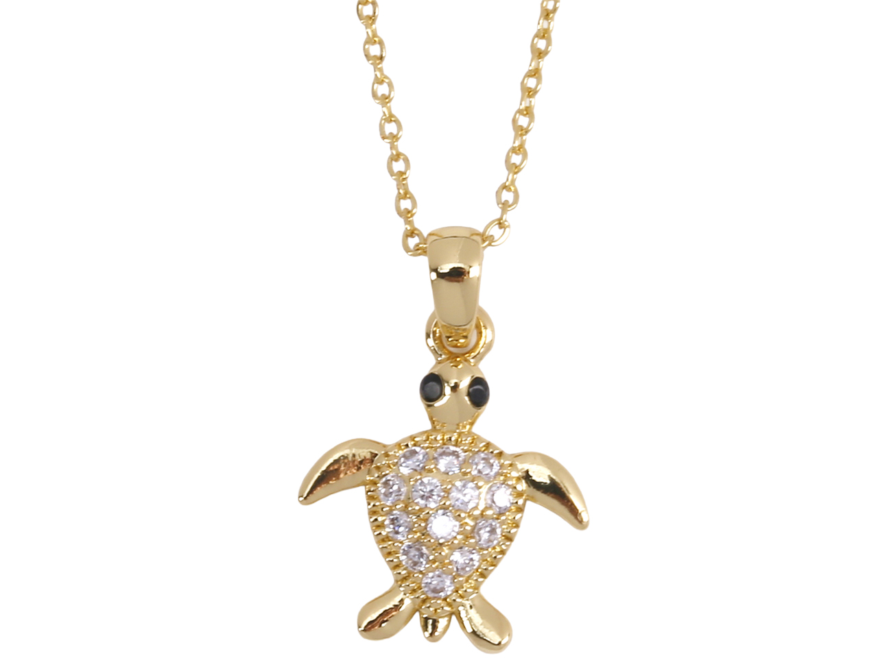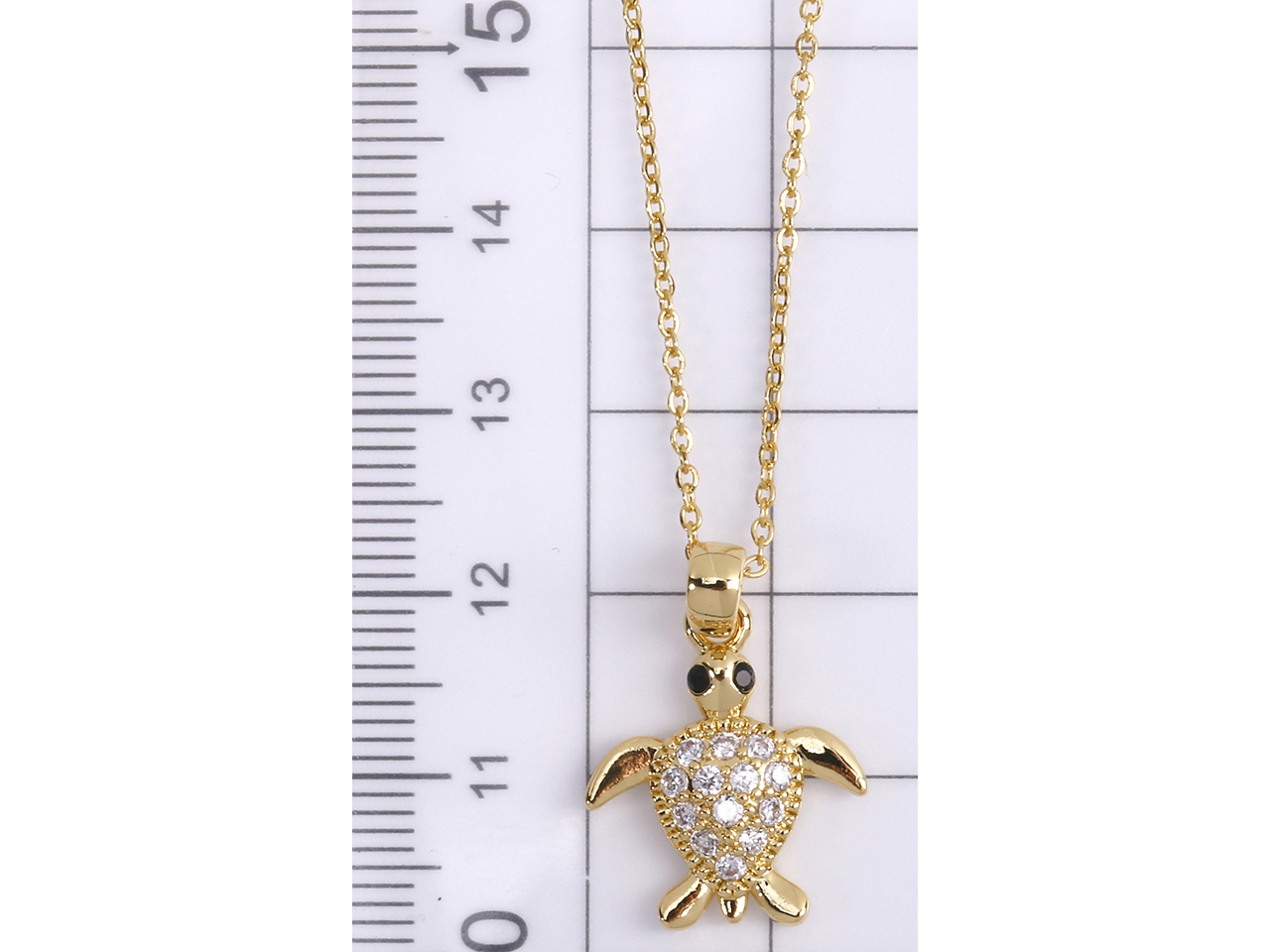 Crystal Turtle Pendant on Gold Tone 16+2″ Chain Necklace, MOQ-6