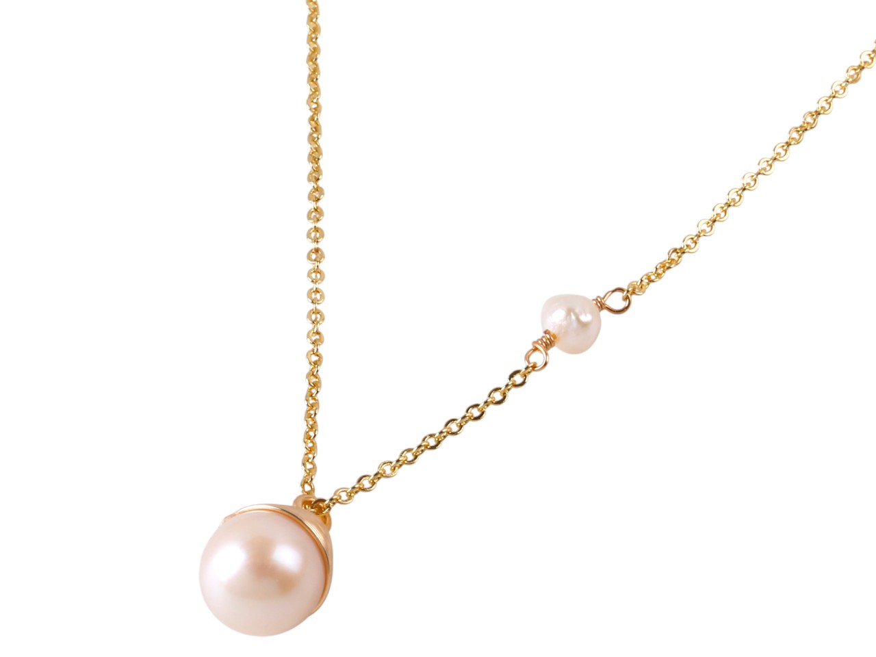 MOP Pearl Warp in Gold Tone Wire Pendant on Inline FWP 16″+2″ Ext. Chain Necklace, MOQ-4