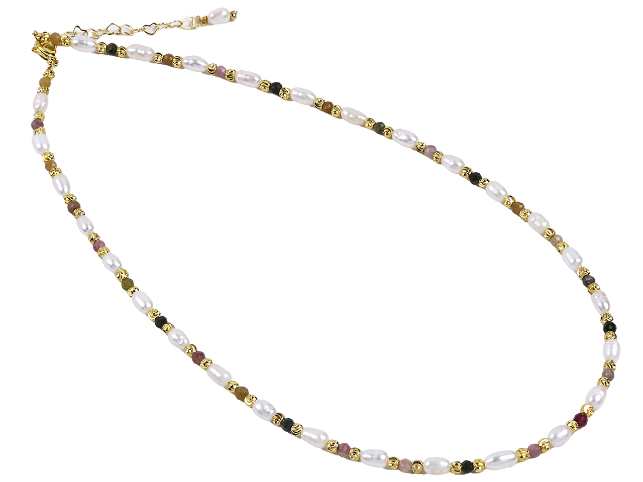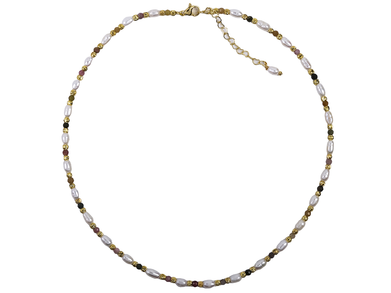 Garnet, Fresh Water Pearl & Gold Tone Beads Necklace 16″+2″ ext., MOQ-2