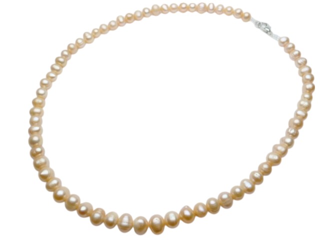 18″ Peach 7-8mm Round Fresh Water Pearl Necklace