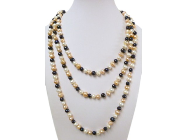 64″ Multi Color Rice Shape 7-8mm Fresh Water Pearl Necklace