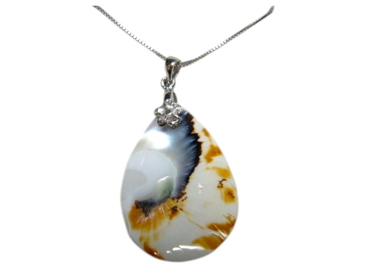 Teardrop natural nautilus shell pendant with 0.7mm 925 silver box chain, 18″