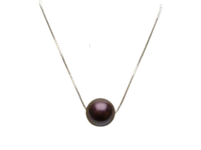 10mm Cranberry Fresh Water Pearl w/18″ Silver Chain