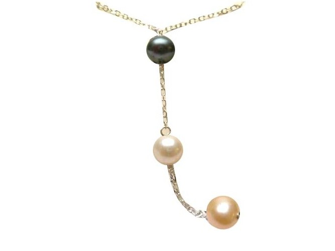 7mm multi-color triple freshwater pearl pendant in 925 silver 16″ link chain with 2″ extension