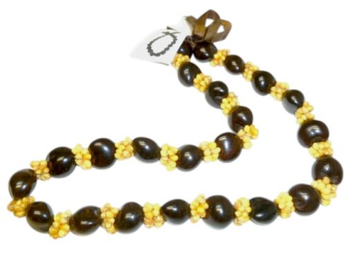 Polished Black Kukui w/ Cream Mongo Shell 32″, 150pcs/cs, MOQ-10pcs/bag