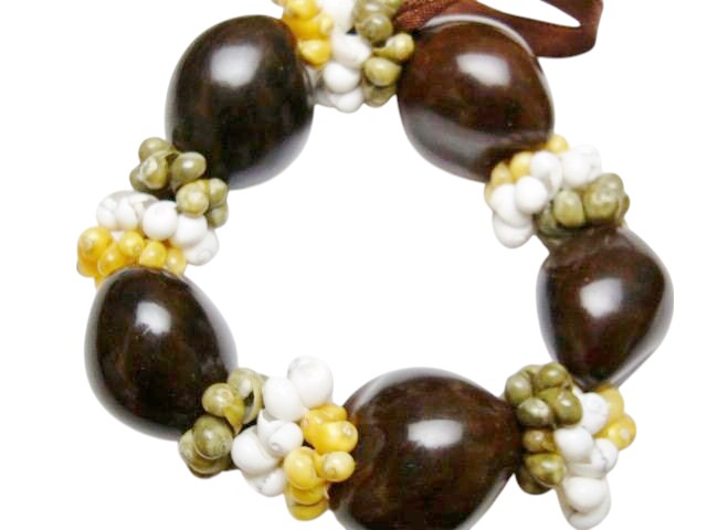 Brown Kukui Nut w/ Tri-Color Mongo Shell Bracelet, 250/cs MOQ-10