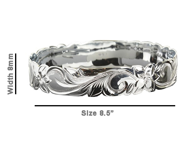 Size 8.5 -8mm Hawaiian Floral Silver Filled Copper Bangle