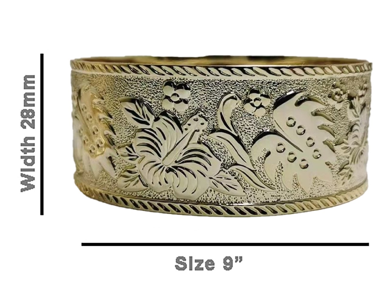 Size 9- 28mm Floral 18K Gold Filled & Plated Copper Bangle