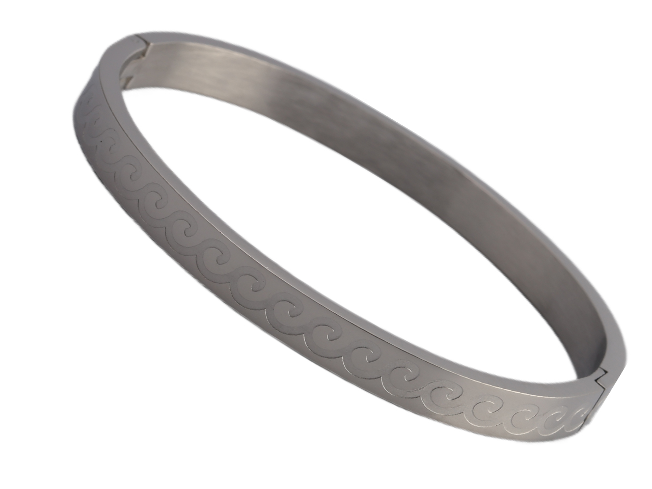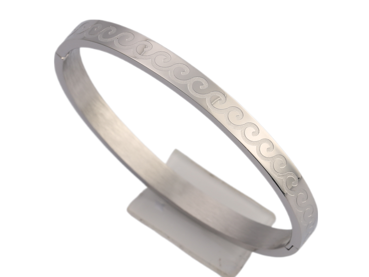 6mm Wave Engraved Stainless Steel Clip Lock Bracelet, MOQ-3
