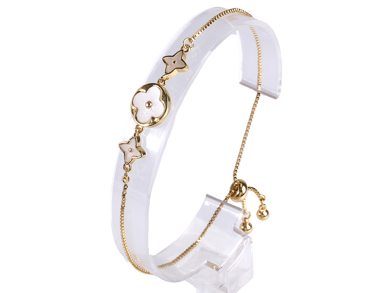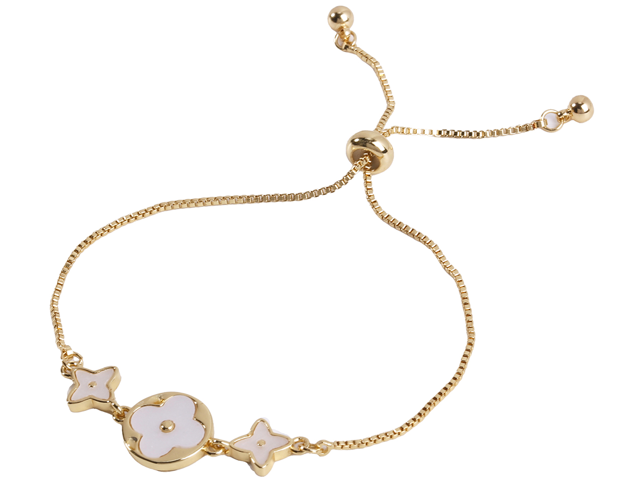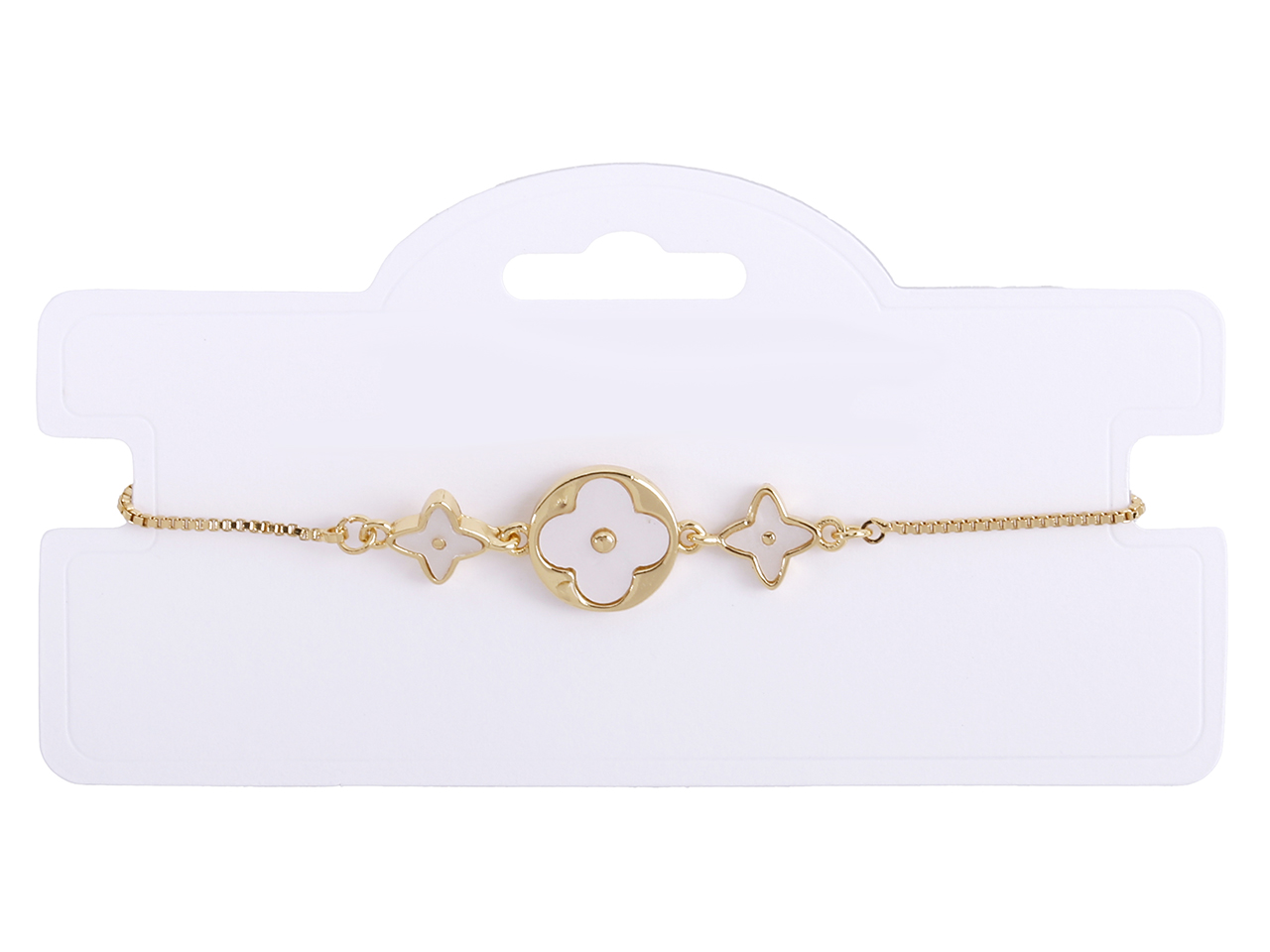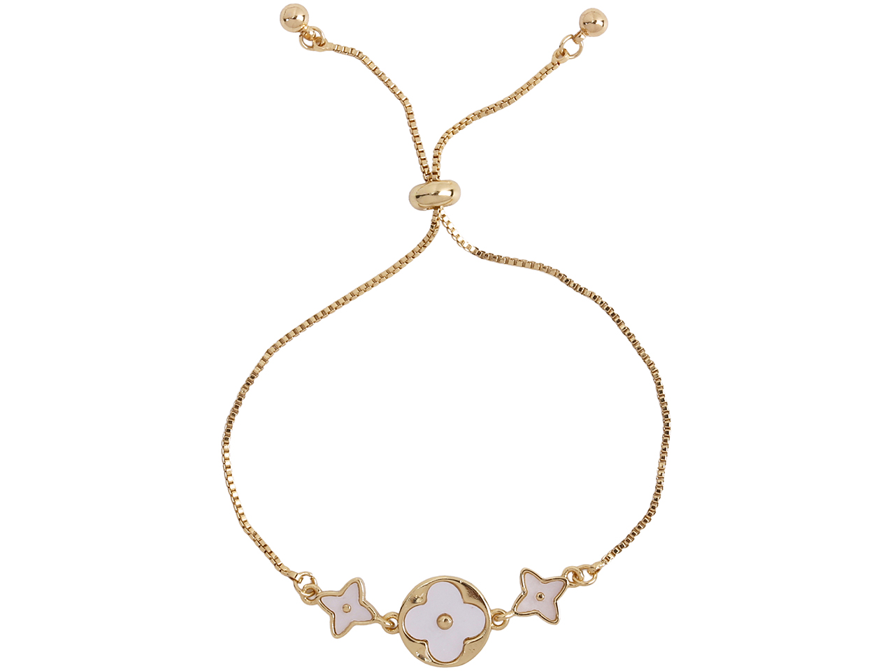 White Four Point Start & Clover in Circle on Gold Tone Bolo Chain Bracelet, MOQ-6