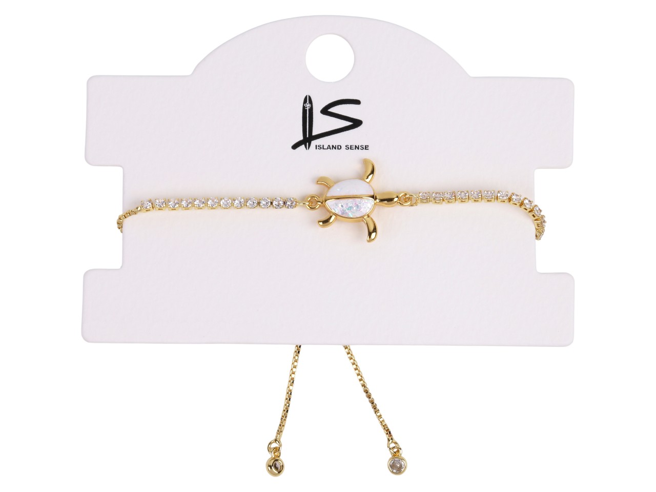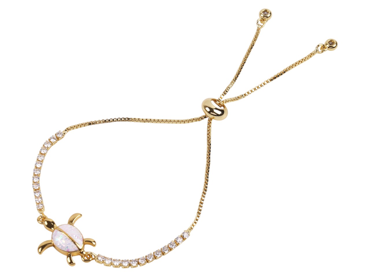 17x19mm White Synthetic Opal Trible Turtle CZ Bolo Gold Tone Chain Adjustable Bracelet, MOQ-6