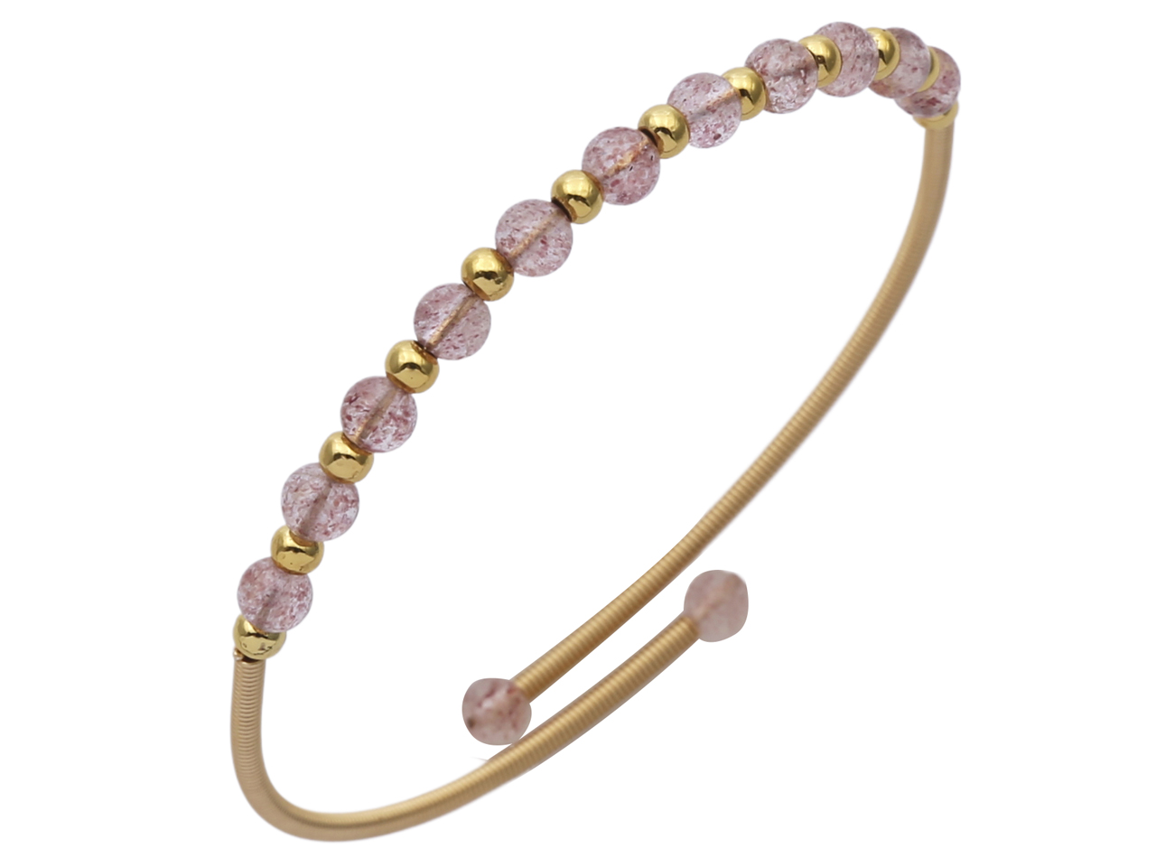 Strawberry Quartz on Gold Fill Adjustable Bangle, MOQ-6/pk