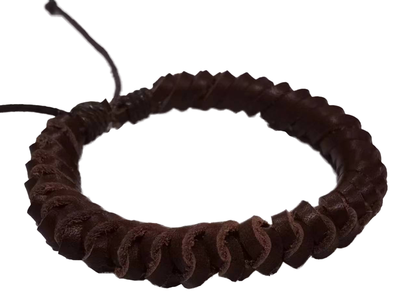 Adjustable Dark Brown Genuine Leather Weaved Bracelet