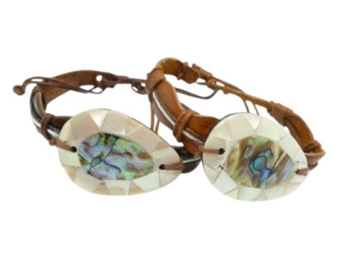 Assorted Shell Pendant Leather Bracelet