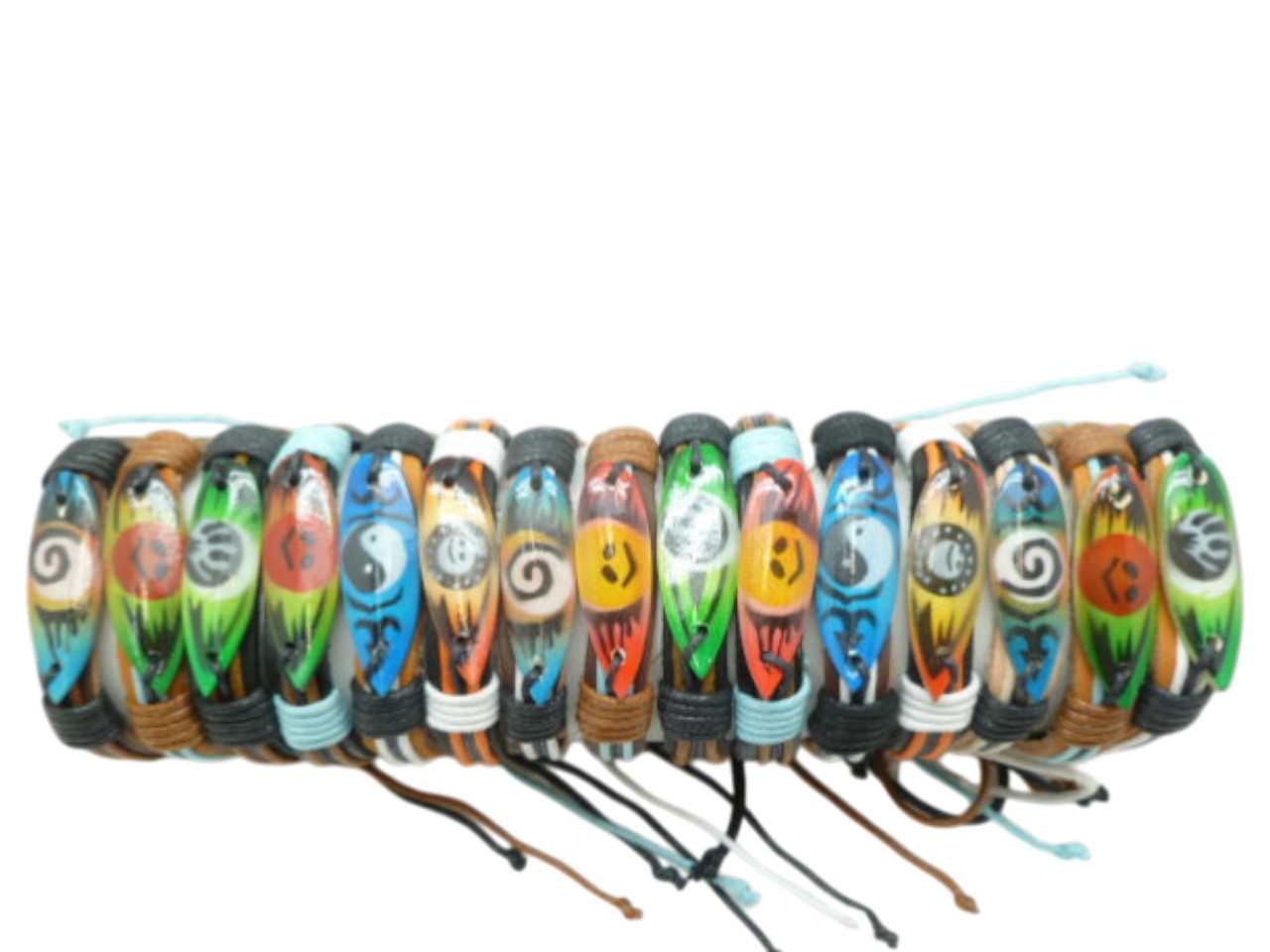 Assorted Wood Surfboard Pendant Leather Bracelet