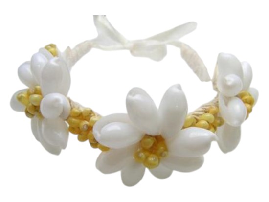 White Bubble Shell w/ Yellow Mongo Shell Raffia Braelet