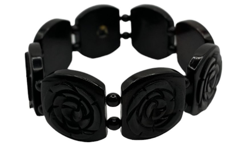 Flower Carved Black Buffalo Bone Elastic Bracelet