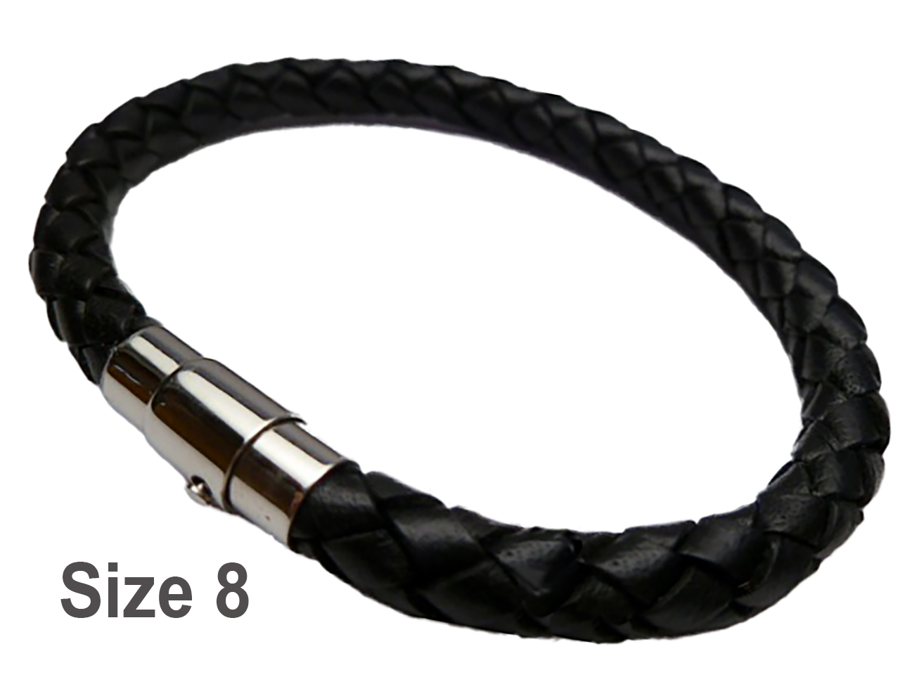 8″ Black Weaved Leather Bracelet Stainless Steel Claps