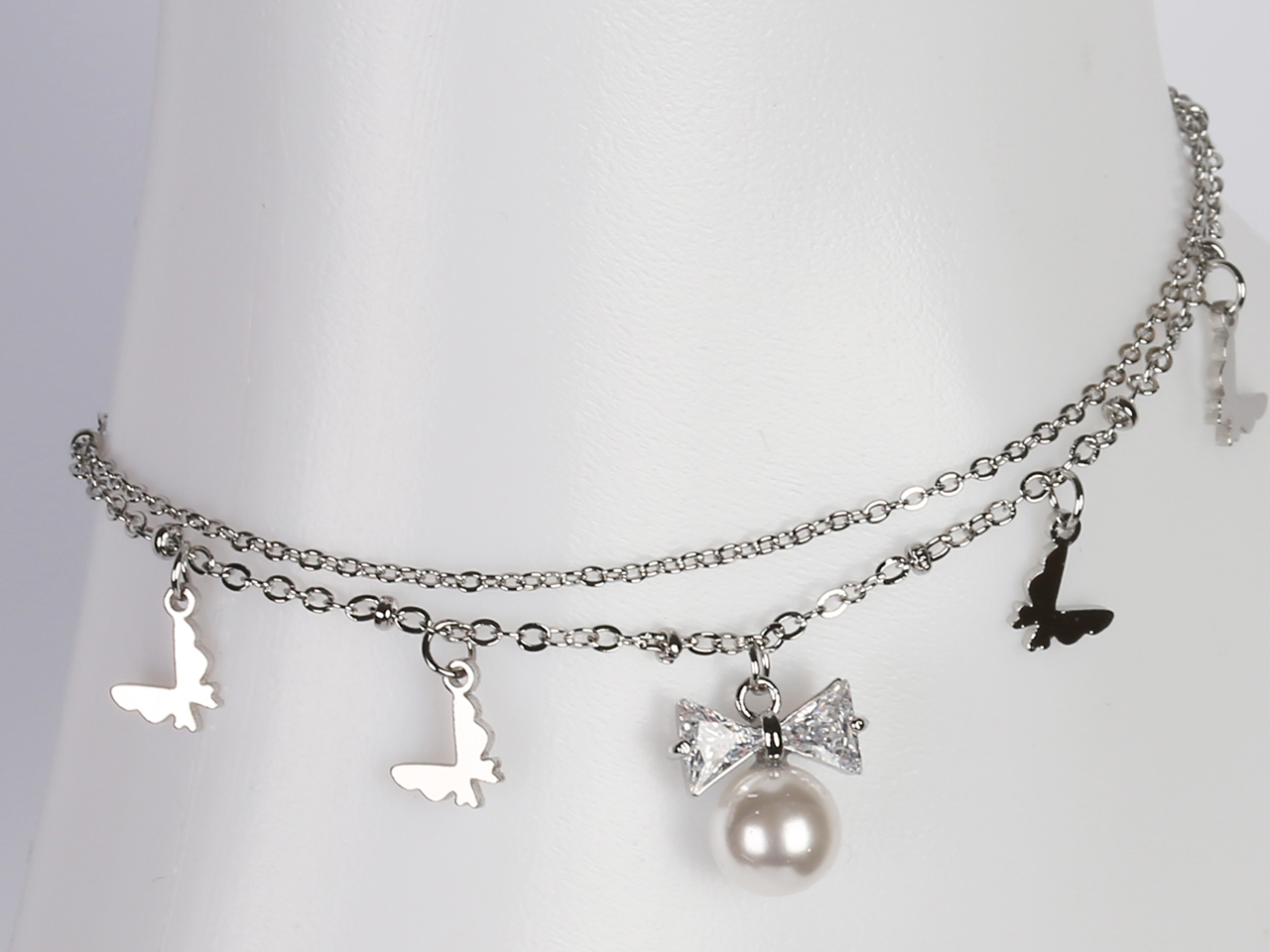 Butterfly & Pearl Charms Anklets, MOQ-6