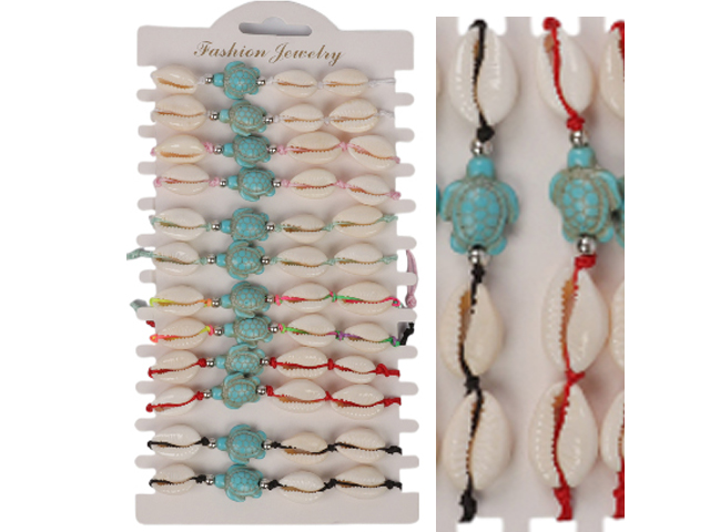 Tourquoise Turtle w/ Cowy Shell Assorted Color Adjustable Bracel
