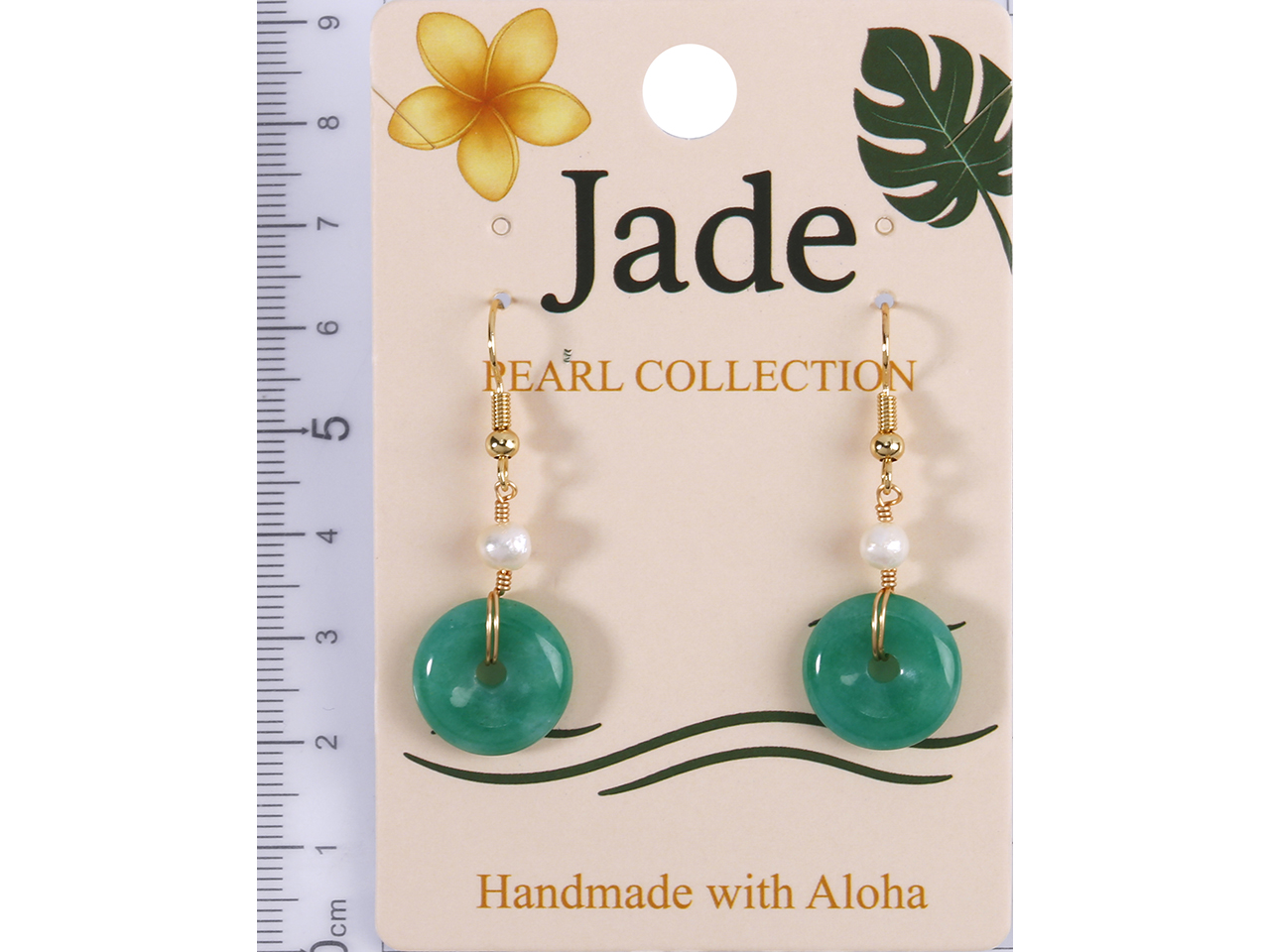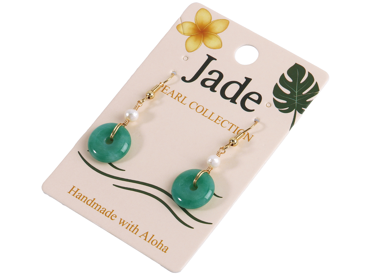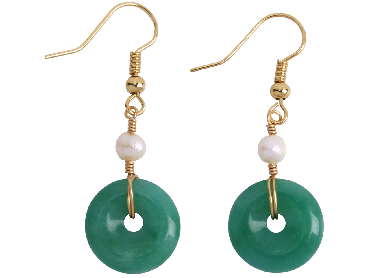 15x4mm Malaysian Jade Donut w/ FW Pearl on Gold Tone Earrings, MOQ-6