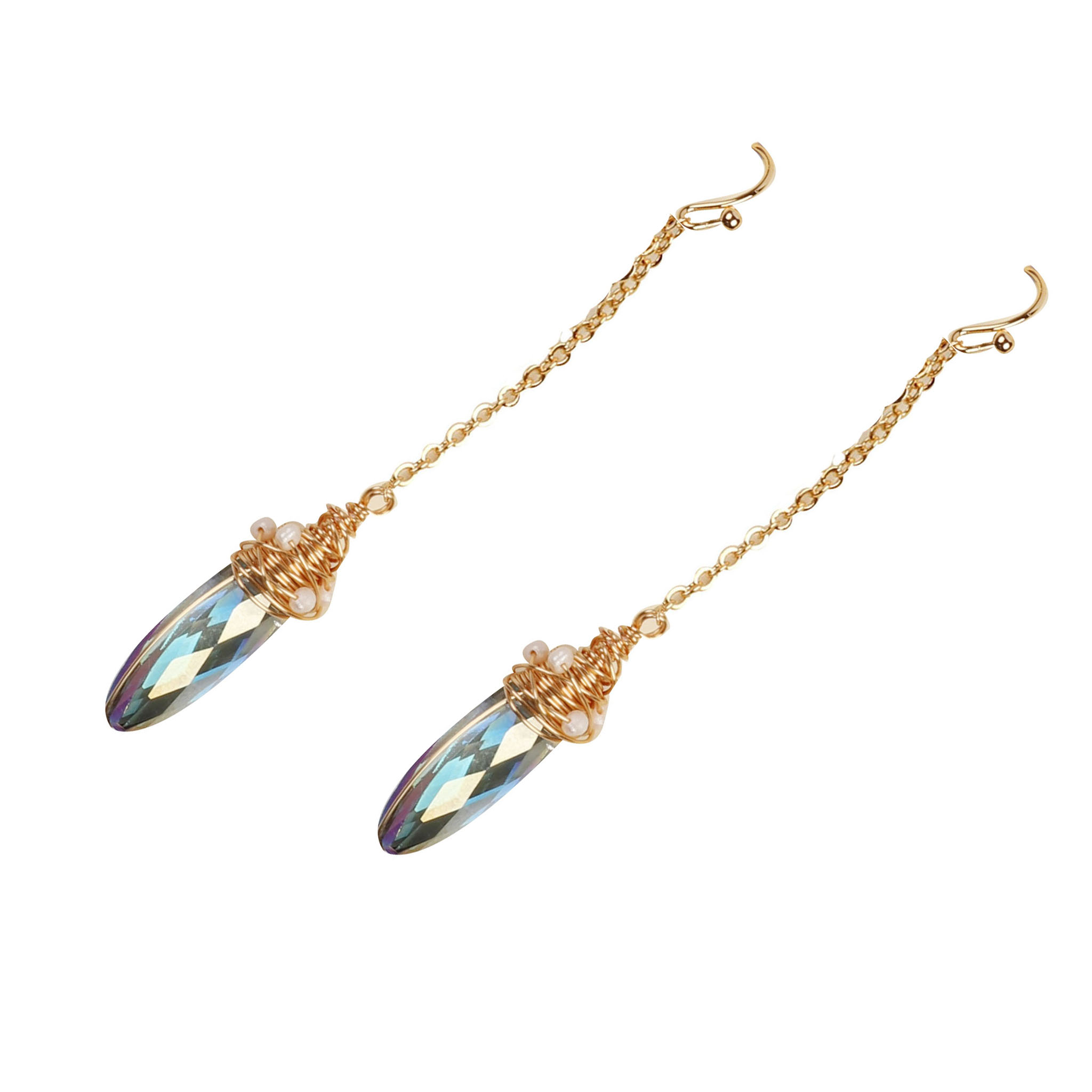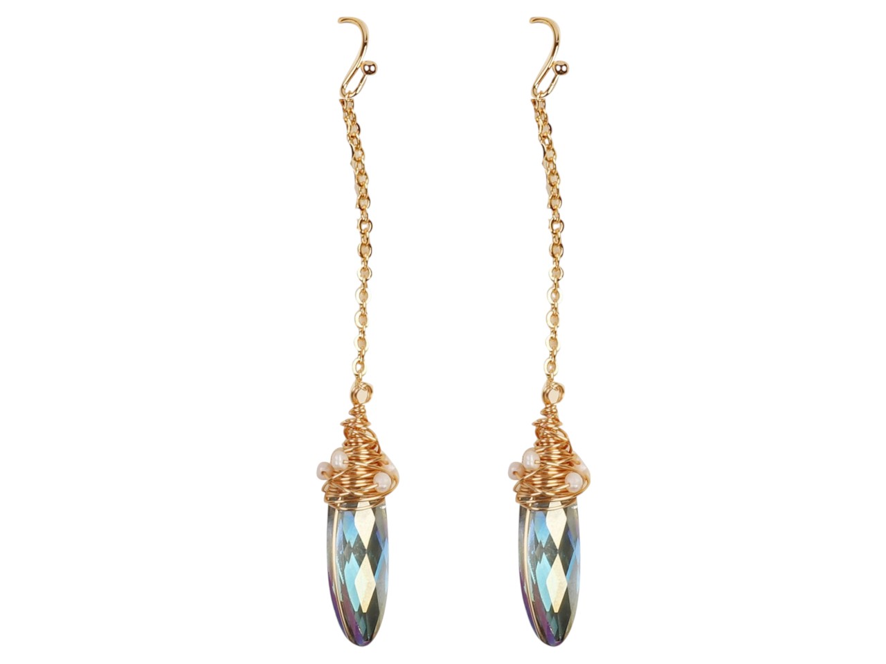 Fresh w/ Crystal Dangle Gold Tone Chain Earrings