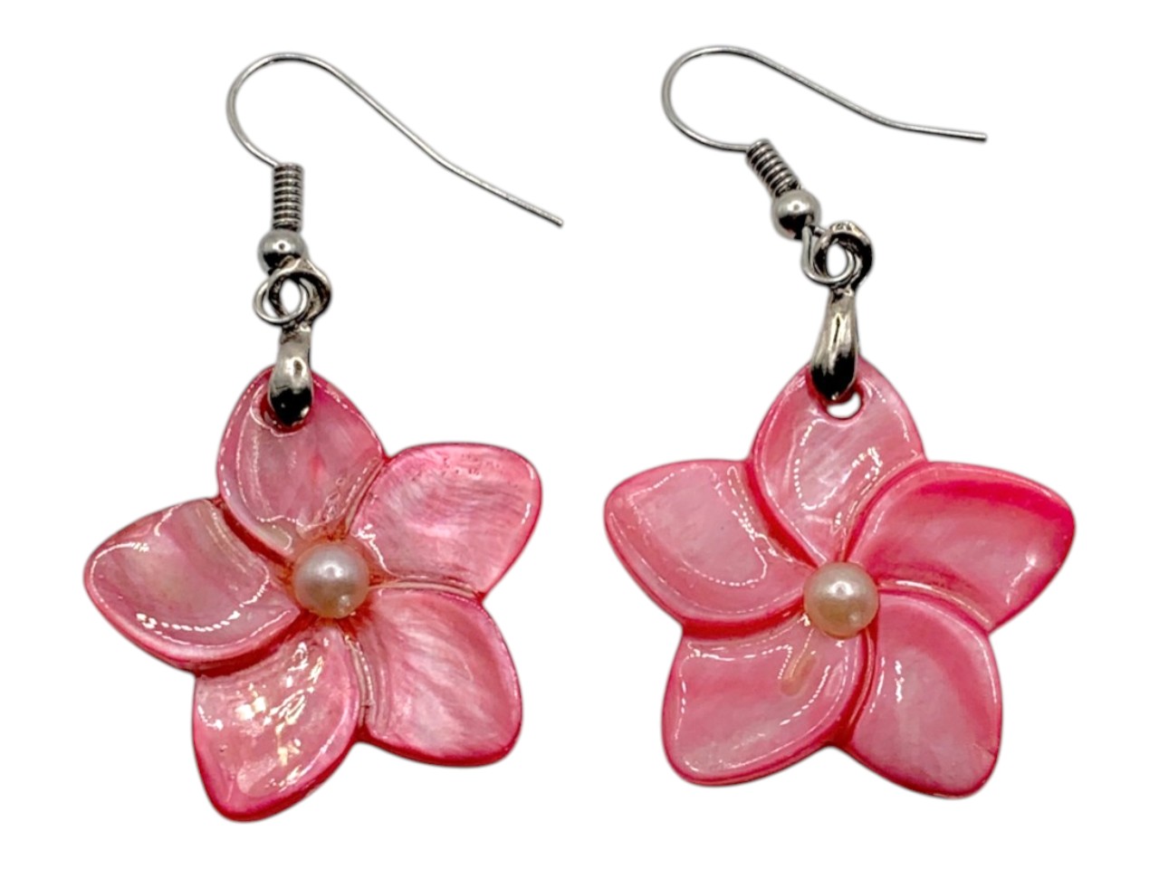 25mm Pink MOP Flower w/ Pearl in Rhodium Plated Earring Hook