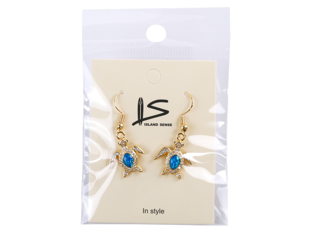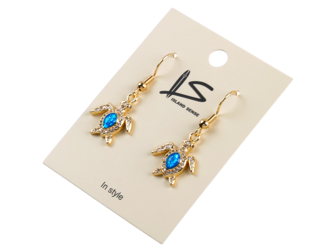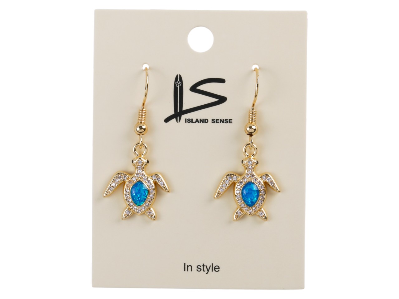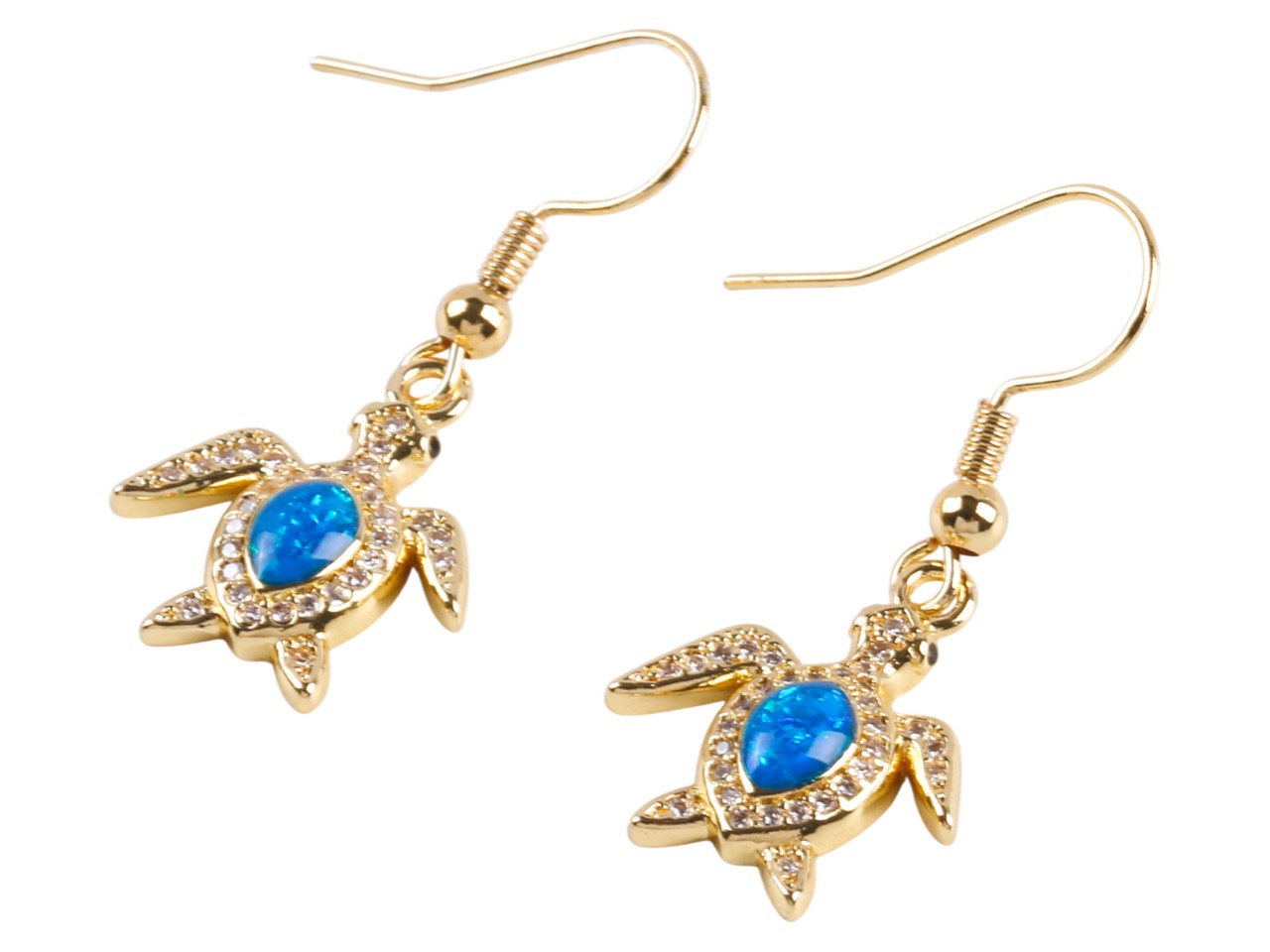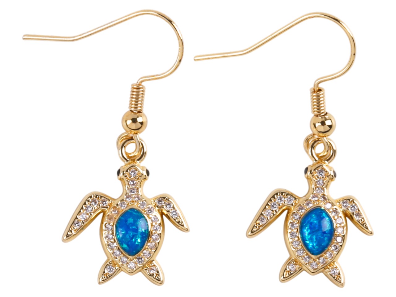 Blue Synthetic Opal Sea Turtle Gold Tone Hook Earring, MOQ-6