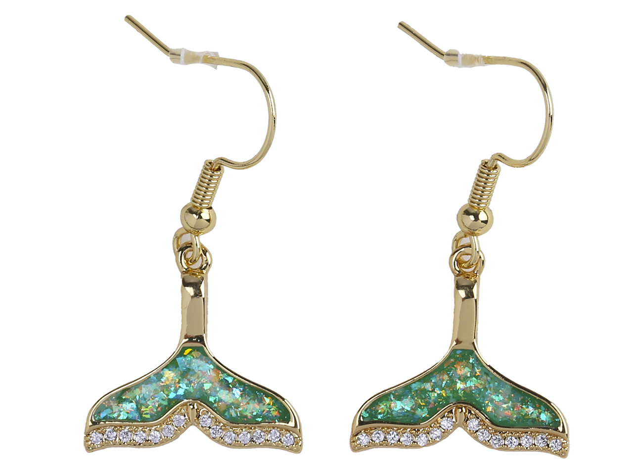 18x20mm Turquoise Synthetic Opal Whale Tail w/ CZ Earring, MOQ-6