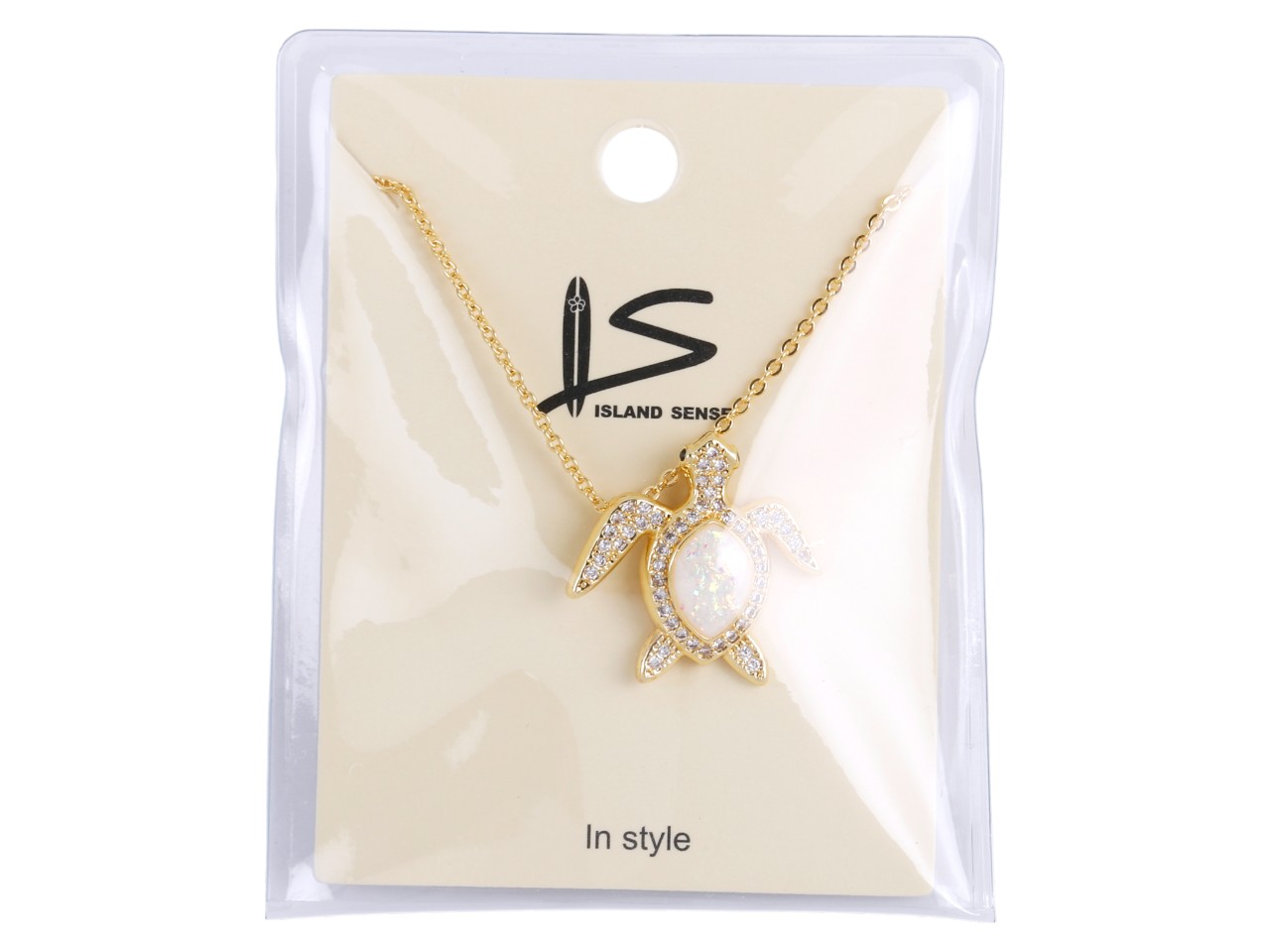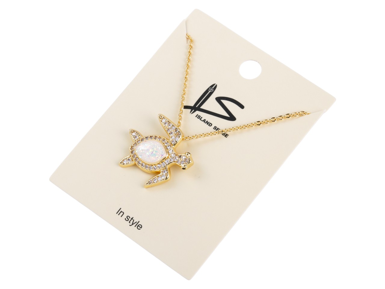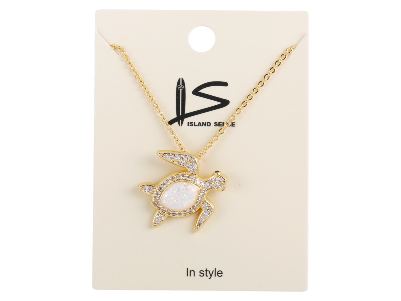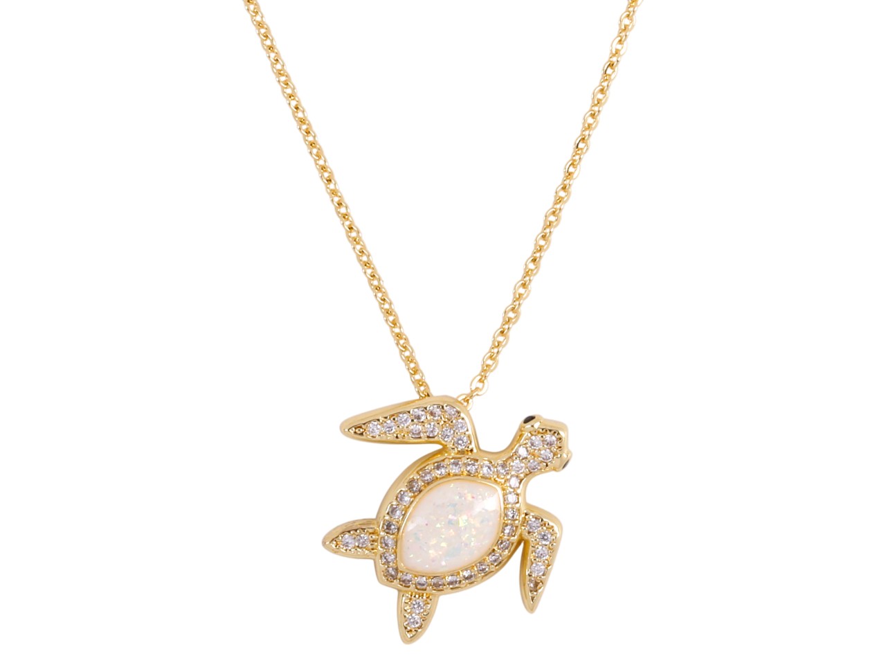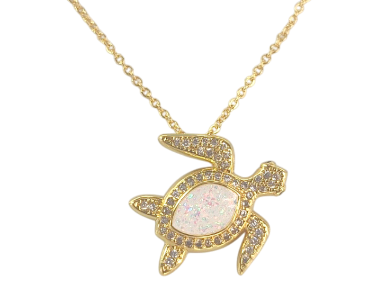 White Synthetic Opal Sea Turtle on 18″ Gold Tone Chain, MOQ-6
