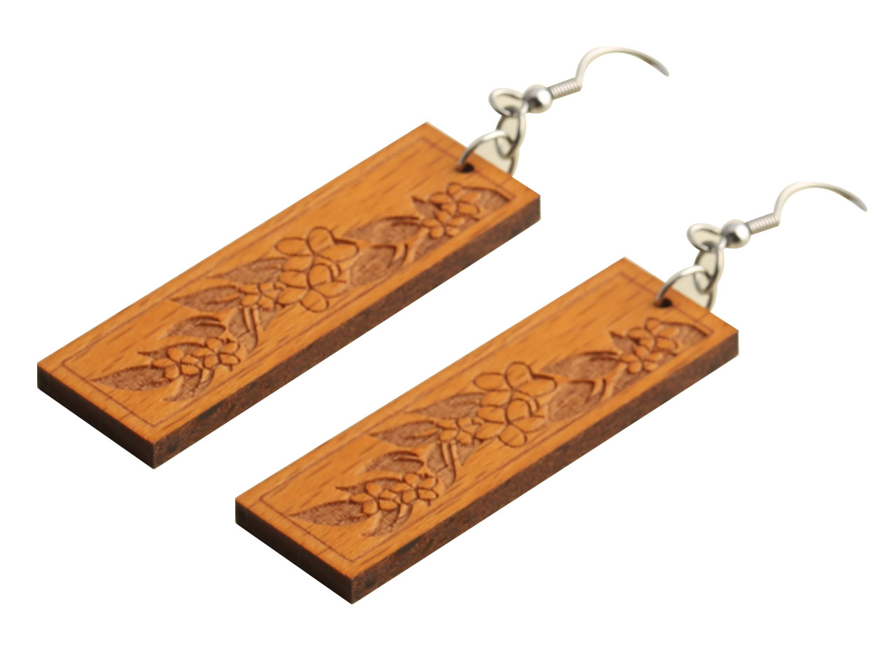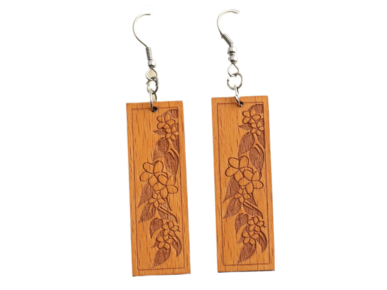 Wood Floral Stamped Earring, MOQ-12