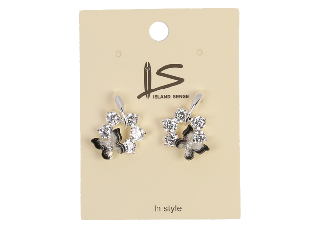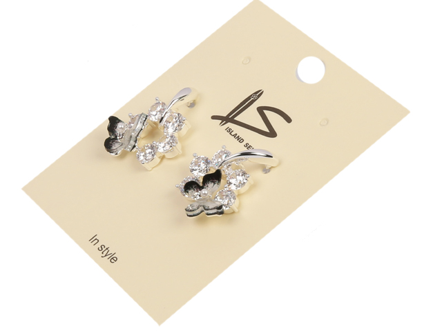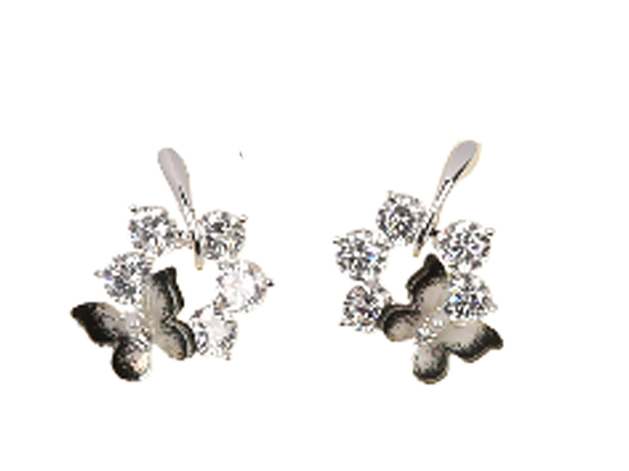 Clear Crystal Butterfly Silver Tone Earrings, MOQ-6
