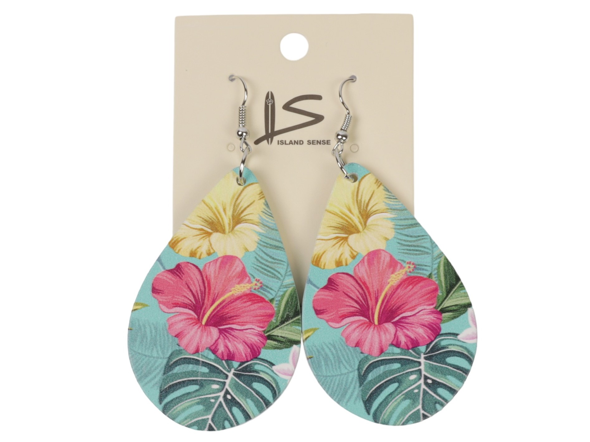 Hibiscus Tropical Floral Print on Teardrop Shape Earrings, MOQ-6