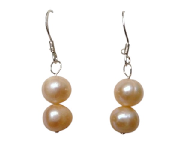 7-8mm Peach Fresh Water Pearl 925 Silver Hook Earring