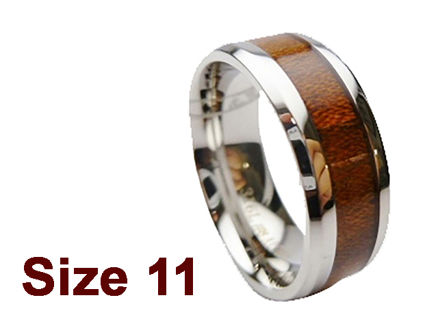 (Size 11) 8mm Koa Wood Stainless Steel Ring
