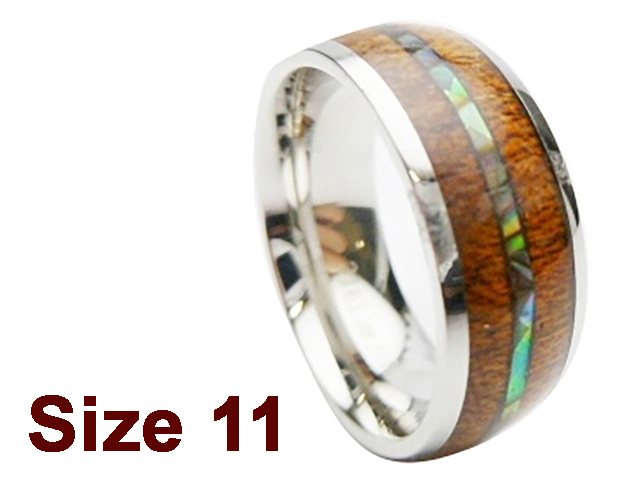 (Size 11) 8mm Abalone Shell & Koa Wood Stainless Steel Ring