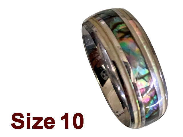 (Size 10) 8mm MOP & Abalone 316L Stainless Steel Ring