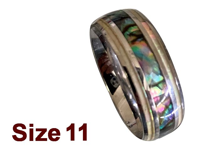 (Size 11) 8mm MOP & Abalone 316L Stainless Steel Ring