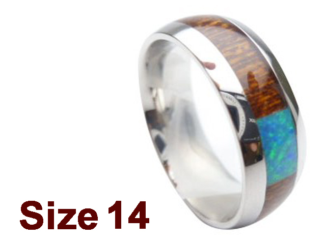 (Size 14) 8mm Koa Wood & Opal Stainless Steel Ring