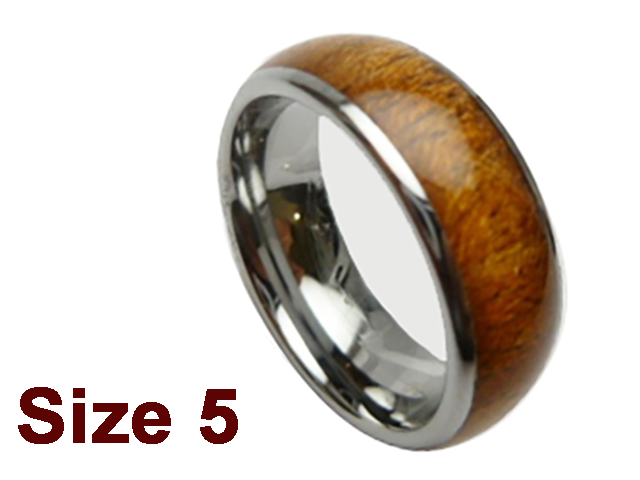 (Size 5) 8mm 316L Stainless Steel w/ Koa Wood Inlay