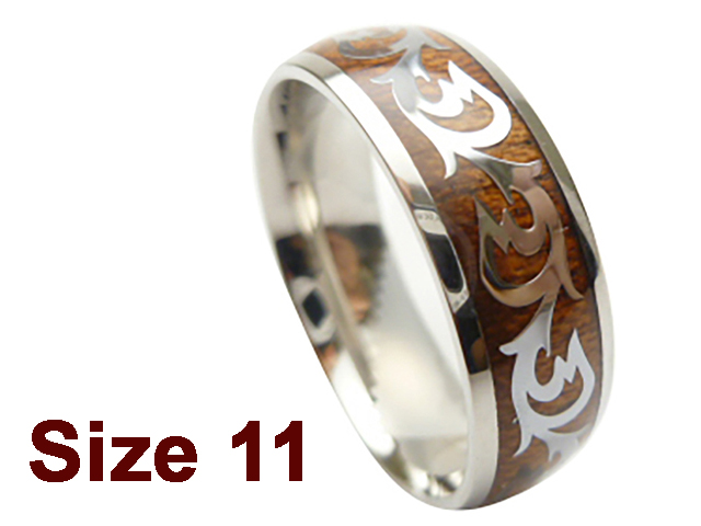 (Size 11) 8mm Stainless Steel Ring w/ Koa Wood