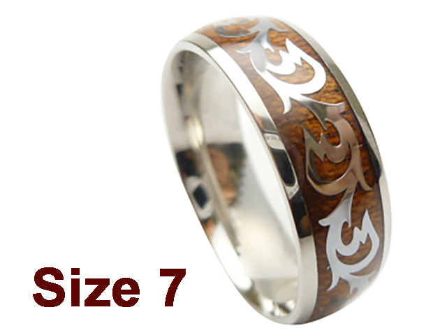 (Size 7) 8mm Stainless Steel Ring w/ Koa Wood