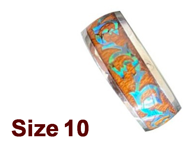 (Size 10) 8mm Koa Wood & Abalone Stainless Steel Ring