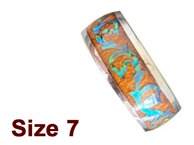(Size 7) 8mm Koa Wood & Abalone Stainless Steel Ring