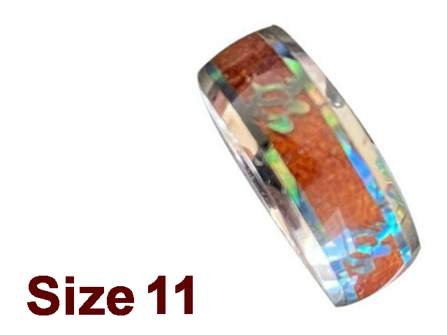 (Size 11) 8mm Koa Wood & Abalone Stainless Steel Ring