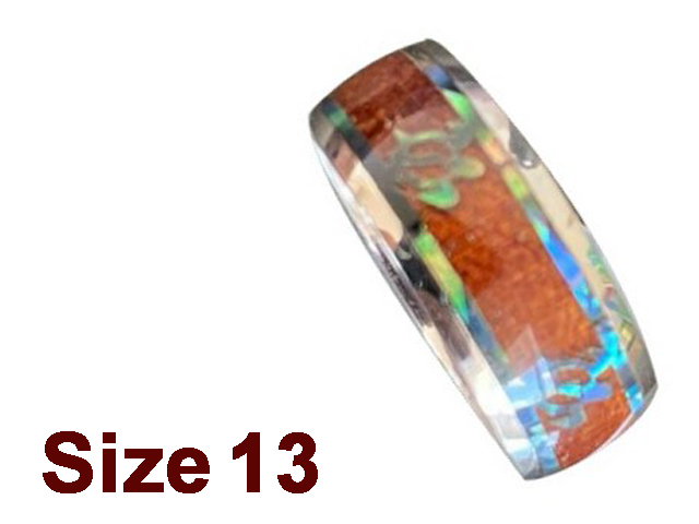 (Size 13) 8mm Koa Wood & Abalone Stainless Steel Ring
