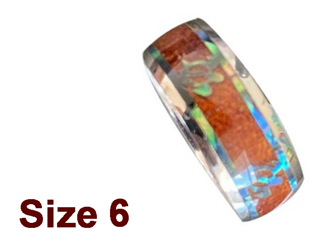 (Size 6) 8mm Koa Wood & Abalone Stainless Steel Ring
