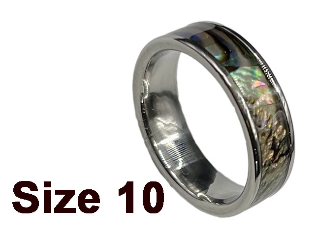 (Size 10) Stainless Abalone Flat Top Ring