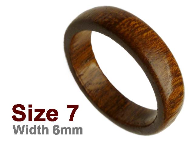 (Size 7) 6mm Flat Curved Top Koa Wood Carved Ring, MOQ-3